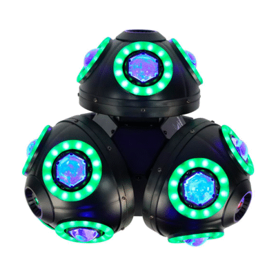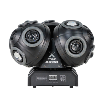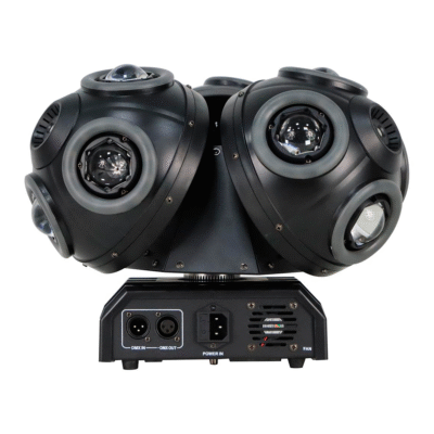 - Triple cabezal móvil con giro infinito: 4 luces BEAM en cada cara