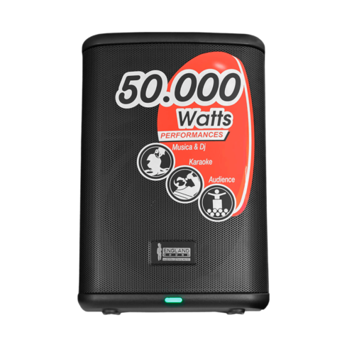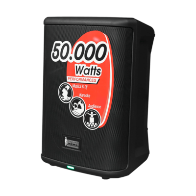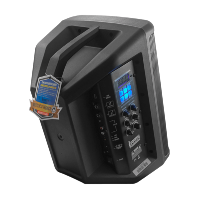 | • Potencia RMS: 100 Watts • Tamaño del woofer: 8 pulgadas • Tipo de driver/tweeter: Super Piezo / Diafragma 1″ • Frecuencia de respuesta: 46Hz 20kHz (10dB) • Sensibilidad: 90dB (+/2dB) • Impedancia nominal: 8 ohmios • Tipo de amplificación: Activo • Alimentación y voltaje: Batería de plomoácido 12V 2.2Ah • Tipo de caja o estructura: Plástico |