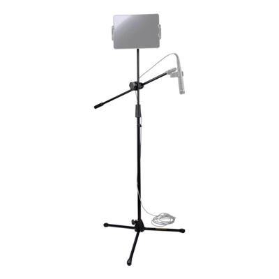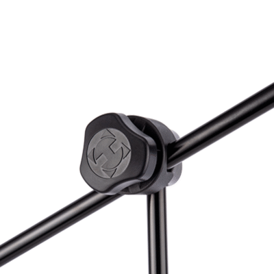 El soporte de micrófono bidireccional HERCULES MS434B Stage Series cuenta con una abrazadera 3 en 1 para jirafa y un embrague de giro rápido. Esta abrazadera 3 en 1, especialmente diseñada, asegura simultáneamente la longitud, la altura y el ángulo de la jirafa con una sola perilla de ajuste.
