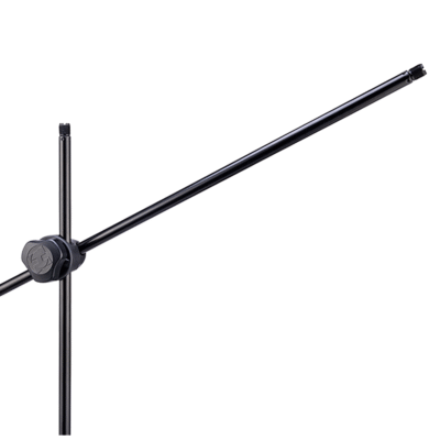 - La abrazadera de pluma 3 en 1 asegura simultáneamente la longitud, la altura y el ángulo de la pluma con una sola perilla de ajuste.