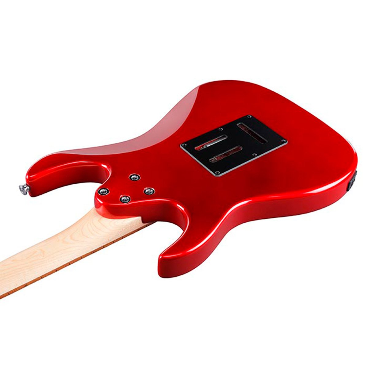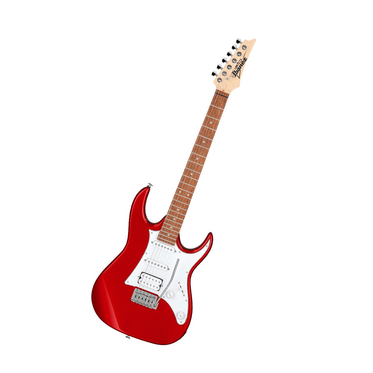 La Ibanez Gio GRX40-CA Candy Apple es un modelo de entrada tanto para principiantes como músicos avanzados con características de ejecución cómodas y un sonido flexible. El modelo ofrede el elegante diseño RG con c utaways y un cuerpo contorneado , un cuerpo de álamo y un mástil de arce atornillado con perfil » GRX » plano . La configuración de pastilla HSS con una potente pastilla humbucker en posición del puente R Infinity y dos pastillas single coil RS Infinity promete una amplia gama de sonidos para casi cualquier estilo de música. El hardware fiable en forma de un puente Ibanez T106 Tremolo y el clavijero prensado de Ibanez completan el modelo.