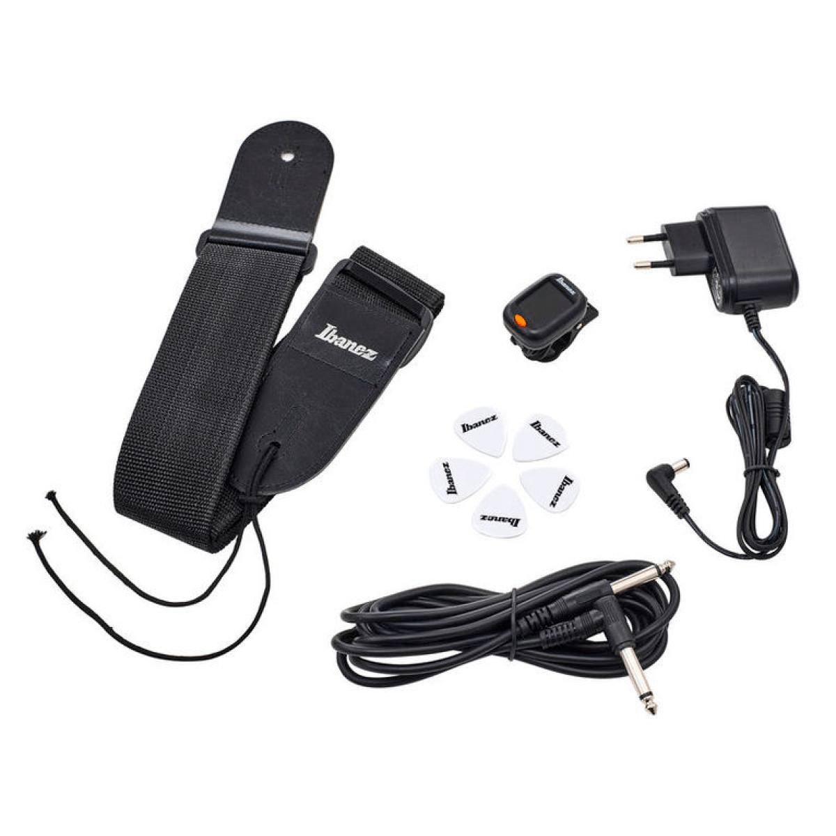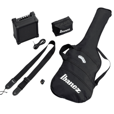 Este pack está diseñado para el guitarrista que quiere comenzar de la mejor forma con el aprendizaje de este instrumento, incluye todos los elementos y accesorios necesarios para transportar y tocar en donde tu quieras. La guitarra de este pack es ideal para cualquier estilo musical ya que viene equipada con una cápsula tipo Humbucking PSND1 en cuello y una cápsula tipo Humbucking PSND2 en puente, que le permite ser un instrumento de precisión con gran poder y un sonido definido. Esta guitarra está basada en la legendaria serie de Ibanez RG, guitarra que verás entre muchos guitarristas metaleros. Además de esta guitarra eléctrica el pack incluye un amplificador de 10 watts, Correa, Cable, Funda Ibanez y Uñetas (imágenes referenciales).