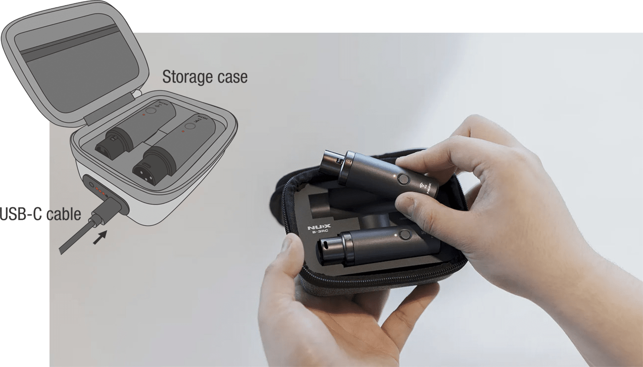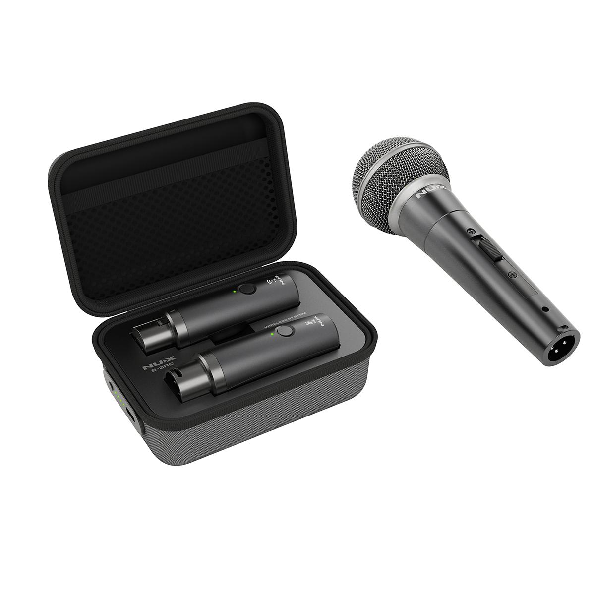 El sistema de micrófono NUX B-3RC de 2.4 GHz te libera de los molestos cables y te permite disfrutar del mundo inalámbrico con funciones y configuraciones sencillas. Su tamaño compacto ofrece una mejor experiencia de uso.El paquete incluye un micrófono dinámico adicional y una caja de almacenamiento para cargar.