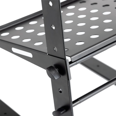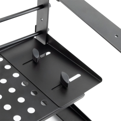- Añade una bandeja de segundo nivel para equipos portátiles adicionales y/o accesorios de hasta 9.9 lbs.