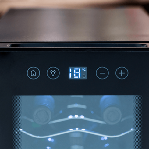 – Esta vinera utiliza el sistema electrónico de refrigeración que asegura una temperatura más estable. Este sistema puede disminuir la temperatura de enfriamiento hasta 12°C y su uso es recomendado para el vino tinto.